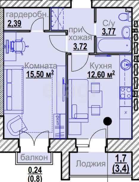 1-комн. 41,91 м²