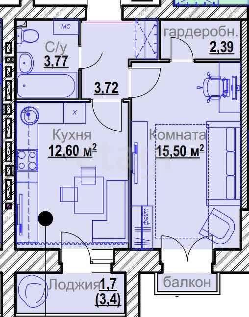1-комн. 39,68 м²