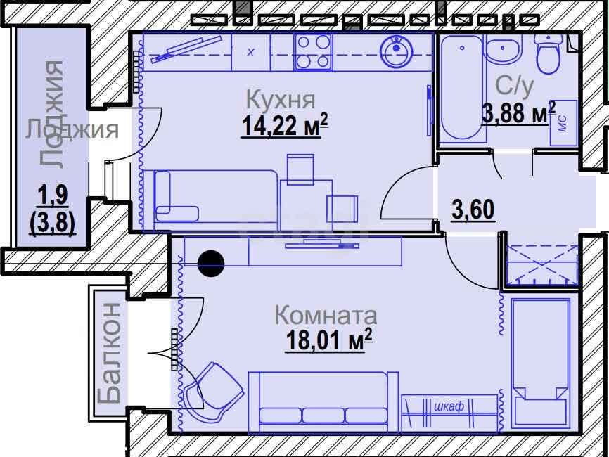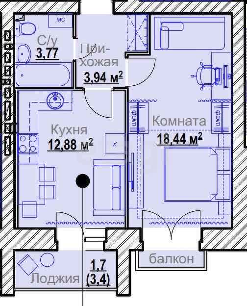 1-комн. 41,03 м²