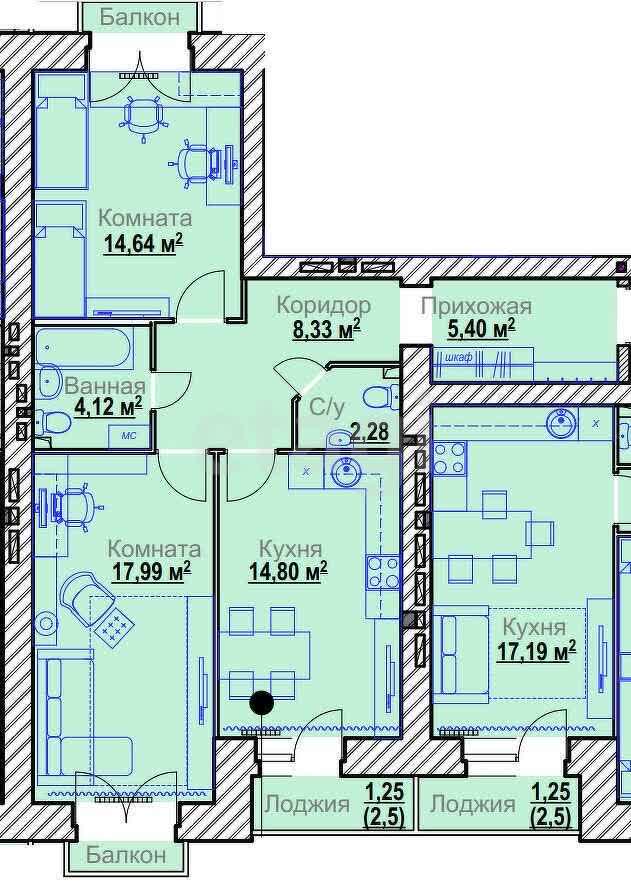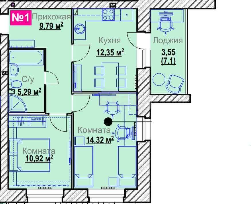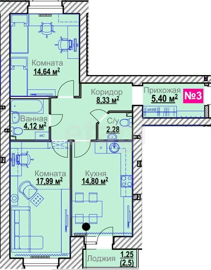 3-комн. 69,41 м²