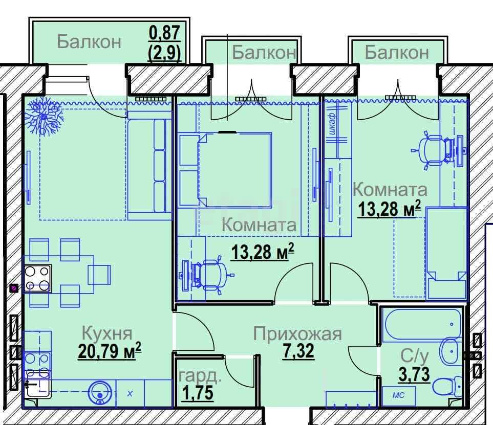 2-комн. 56,22 м²