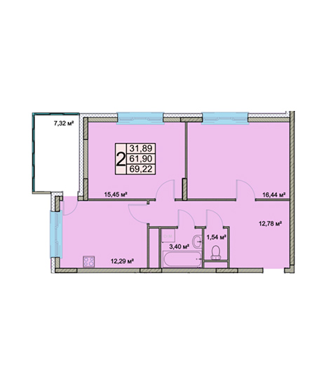 Отделка «Под чистовую». Высота потолков 2.68. Балконы,лоджии из алюминиевого профиля с витражным остеклением. Отопительные приборы -биметаллические.