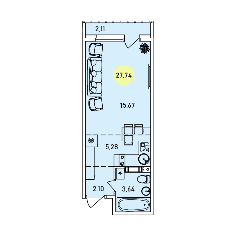 Студия 27,74 м2