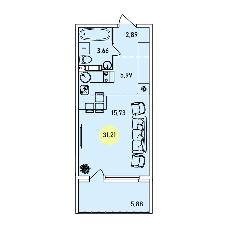 Студия 31,21 м2