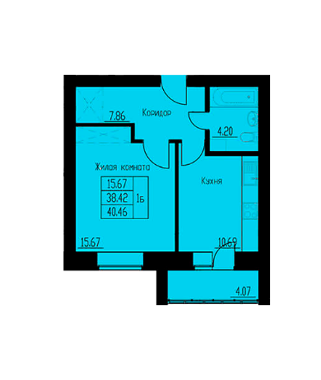 1-комн. 40,39 м2