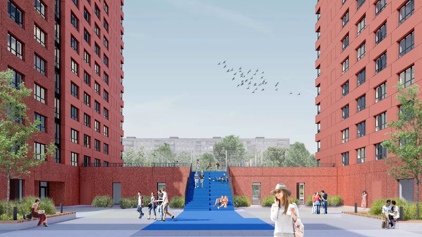 Это будет Дизайнерский дом комфорт-класса с двумя 18-этажными башнями терракотового цвета, увеличенными окнами, панорамным остеклением лоджий и эксплуатируемой крышей, откуда собственники квартир могут наблюдать: город, красивые рассветы и закаты над Волгой.