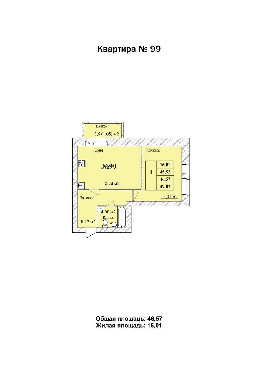 1-комн. 46,57 м2