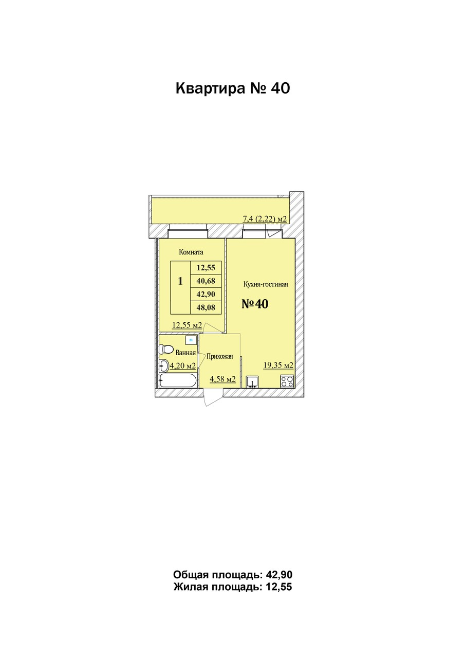 1-комн. 42,9 м2