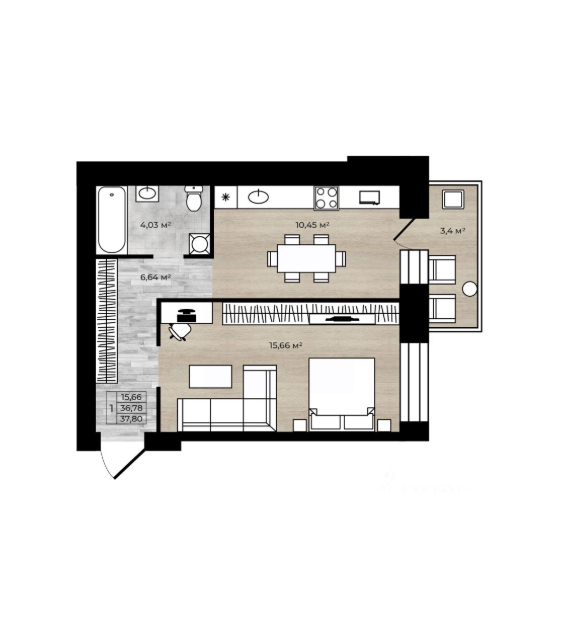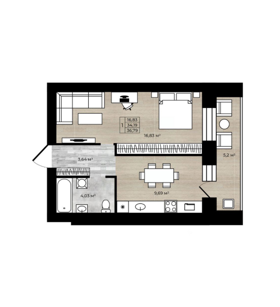 1-комн. 36,79 м2